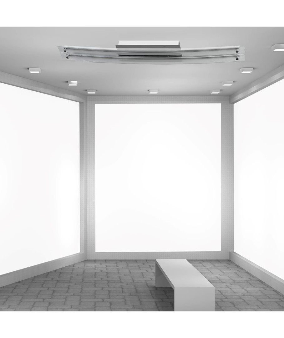 Opgrader din belysning med denne moderne og stilrene loftslampe, der er fremstillet af bøjet glas og krom. Med en dobbelt oval form og en effekt på 36W bringer den en unik æstetik og effektivitet til dit rum.