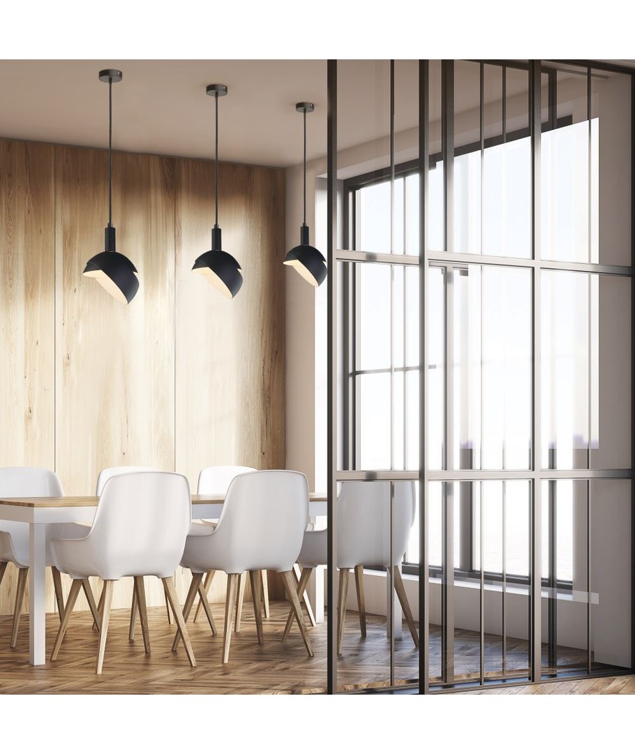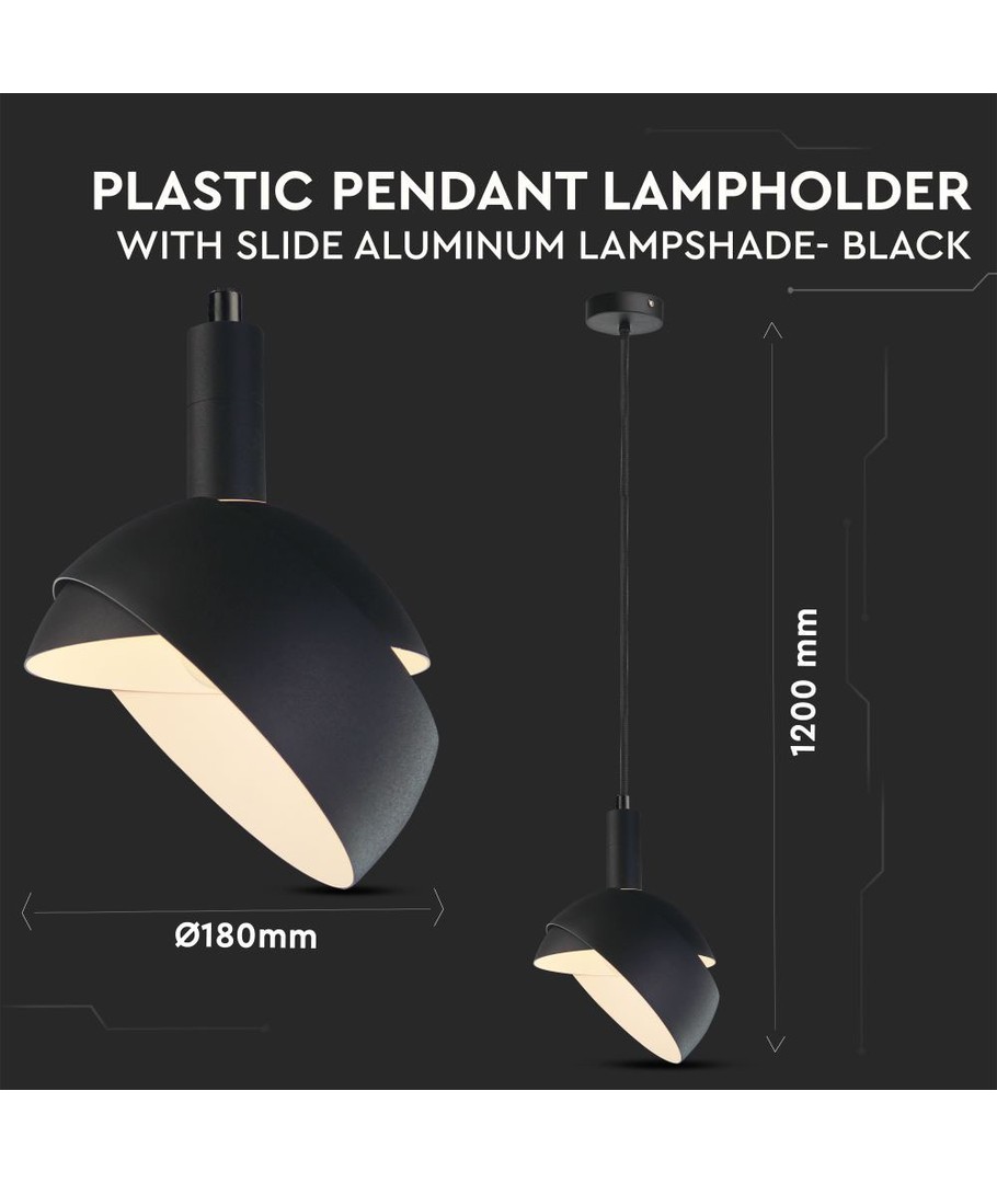 Denne moderne lampe er designet med en E14 fatning og har en stilfuld kombination af plastik og glidende aluminium, der giver et elegant udseende til enhver indretning. Farven sort udstråler enkelhed og passer perfekt til både hjemmet og kontoret.