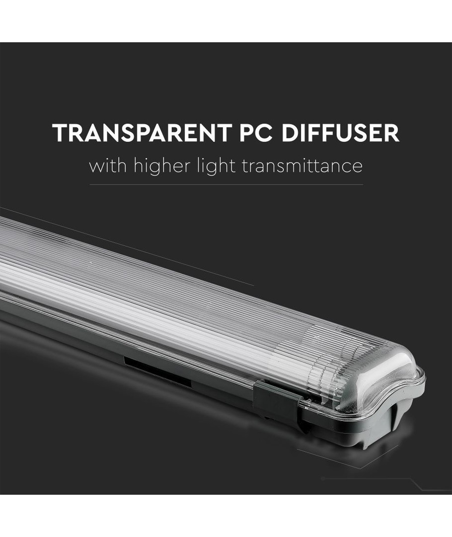 Den høje lysspredning på 120 grader gør den særligt egnet til områder, hvor jævn fordeling af lyset er en nødvendighed. Det integrerede LED-rør udsender et koldt hvidt lys på 6500K, som især er ideelt til specielle anvendelser såsom malerkabiner og akvarium-design.