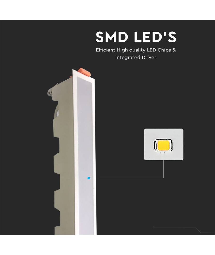 Oplev den effektive belysning med dette 30W LED lineære lys. Det er designet til at give en lysstyrke på 2400 lumens, hvilket sikrer en jævn fordeling af lyset med en høj spredning på 120 grader.
