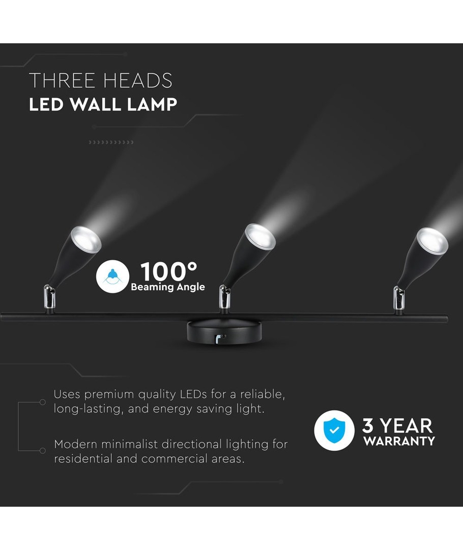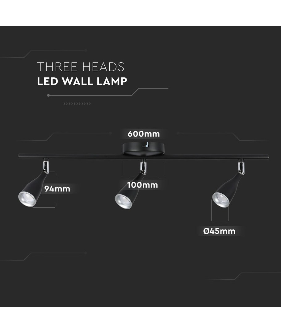 Oplev den ideelle kombination af funktionalitet og stil med denne 13.5W LED væglampe fra V-Tac Pro serien. Med sine tre hoveder tilbyder den effektiv og behagelig belysning til ethvert rum.