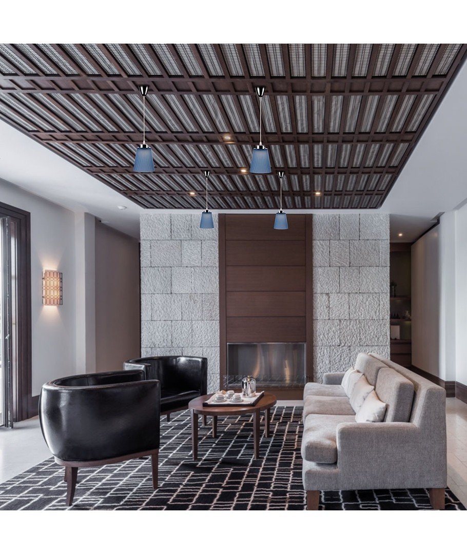 Oplev en 7W loftslampe med unik stil og imponerende funktionalitet, der vil oplyse dine rum med et indirekte og jævnt lys. Med et raffineret krom hus og en blå skærm, tilføjer denne loftslampe et moderne præg til enhver indretning.