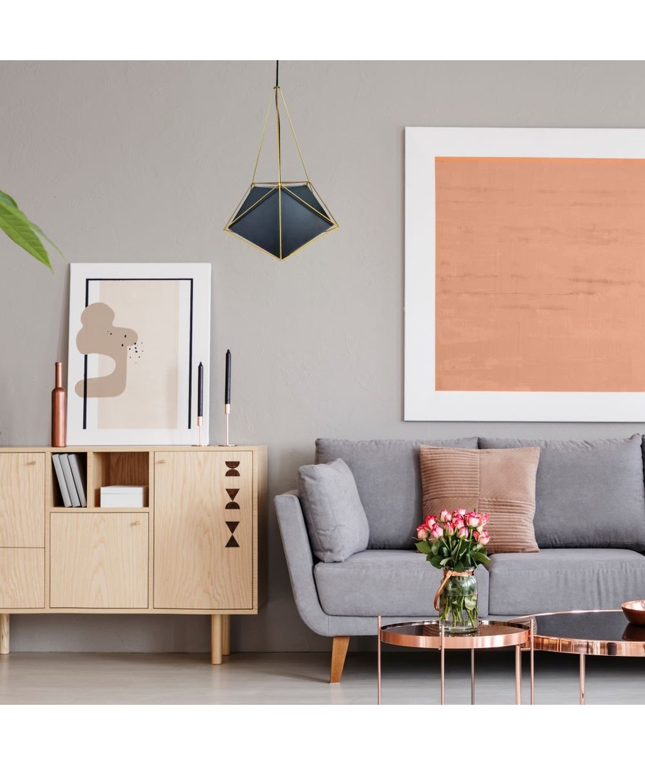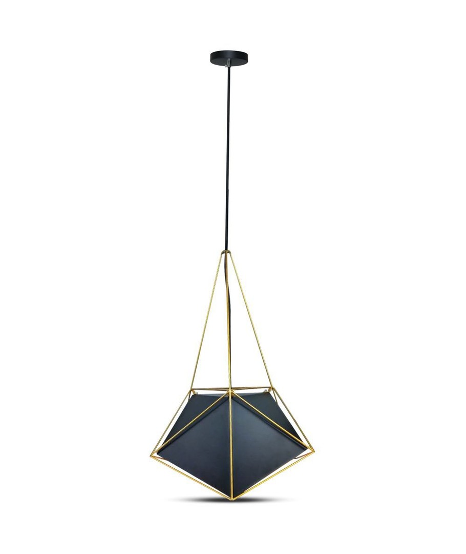 Den sort lampeskærm med guldkant tilføjer en luksuriøs stemning og giver lampen et sofistikeret udseende. Med dimensionerne Ø400 x 540 mm er lampen ideel til både små og store rum, hvor den både kan være en central belysning eller en dekorativ tilføjelse.