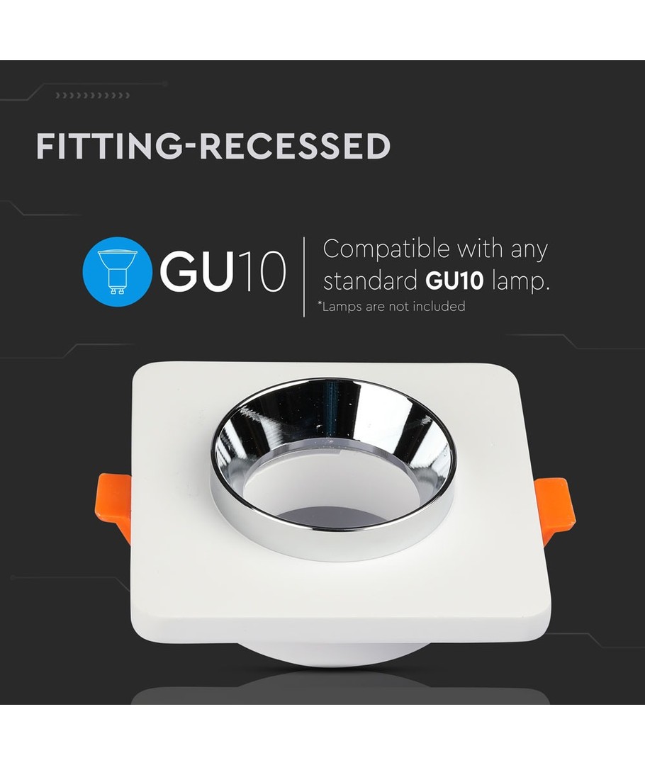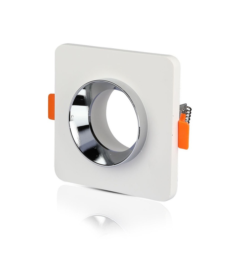 GU10 Gips Metal - Elegant firkantet spotlight med krom detaljer.