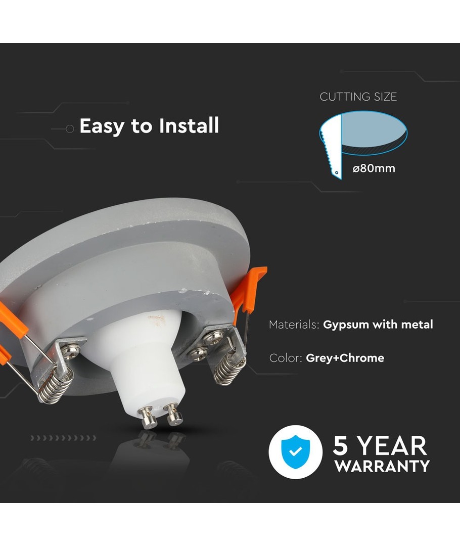 GU10 indbygningsspot i gips - Rund, grå beton med krom, Ø80 mm hul, IP20 indendørs V-TAC Udvid