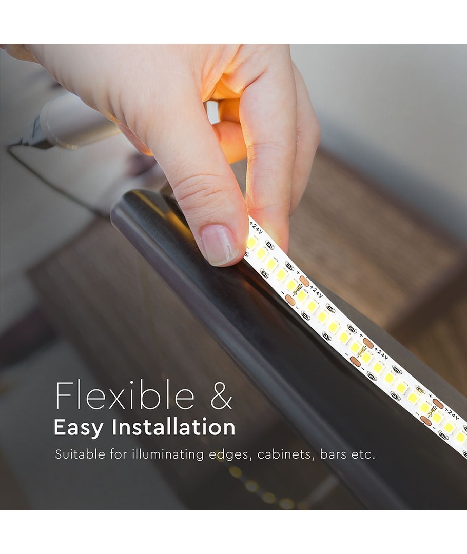 Produktet er designet med IP20 klassificering, hvilket betyder, at det ikke er modstandsdygtigt over for vand, og derfor bør det anvendes i tørre indendørs miljøer. Med dimensioner på kun 10 mm er LED strippen både kompakt og fleksibel, hvilket gør den nem at installere i forskellige opsætninger.