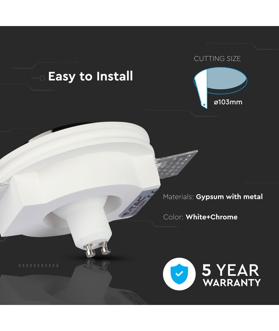 GU10 hvid gips (nedsænket) med krom metal - rundt V-TAC Udvid