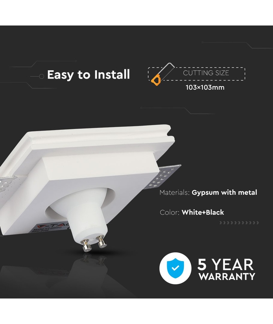 GU10 - hvid gips (nedsænket), sort metal-firkant V-TAC Udvid