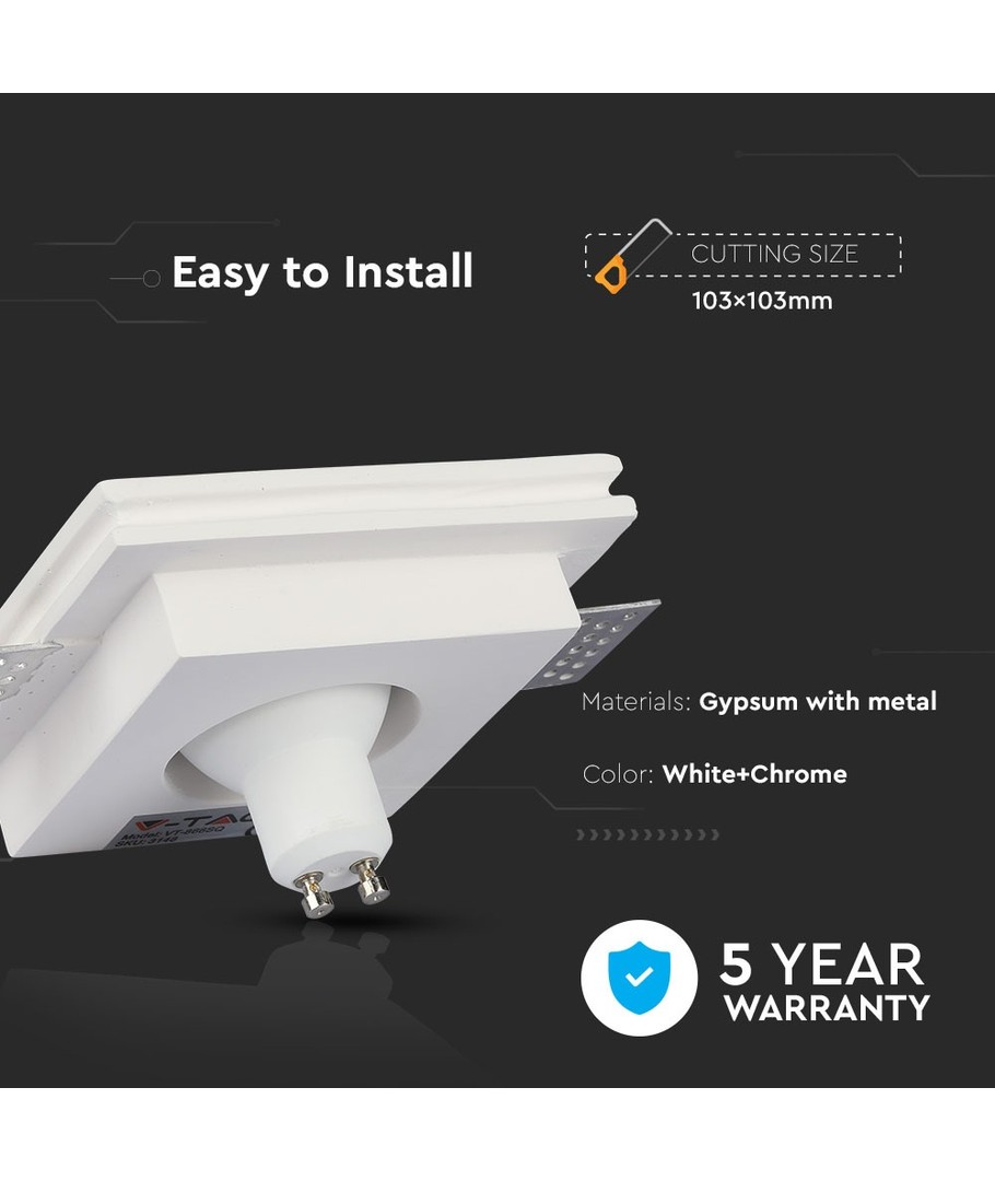 GU10 - hvid gips (nedsænket) med krom metal, firkantet V-TAC Udvid