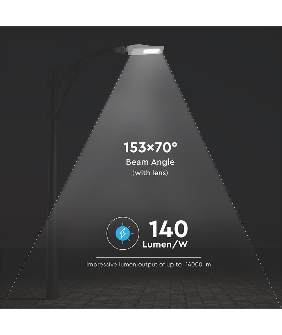 Opgrader dine udendørs lysinstallationer med denne 100W LED gadebelysning, der leverer 14000 lumens. Kombinationen af Samsung LED chip og en professionel driver sikrer en lysstyrke på 140lm/W, som er ideel til et bredt spektrum af belysningsopgaver.