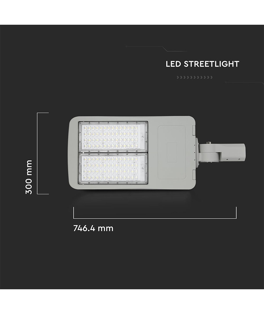 Denne kraftfulde 200W LED Gadelygte tilbyder en fremragende belysningsløsning til udendørs brug. Med en lysstyrke på 28,000 lumens og en høj spredning på 153/70 grader sikrer denne lygte en jævn og effektiv distribution af lys over et bredt område.