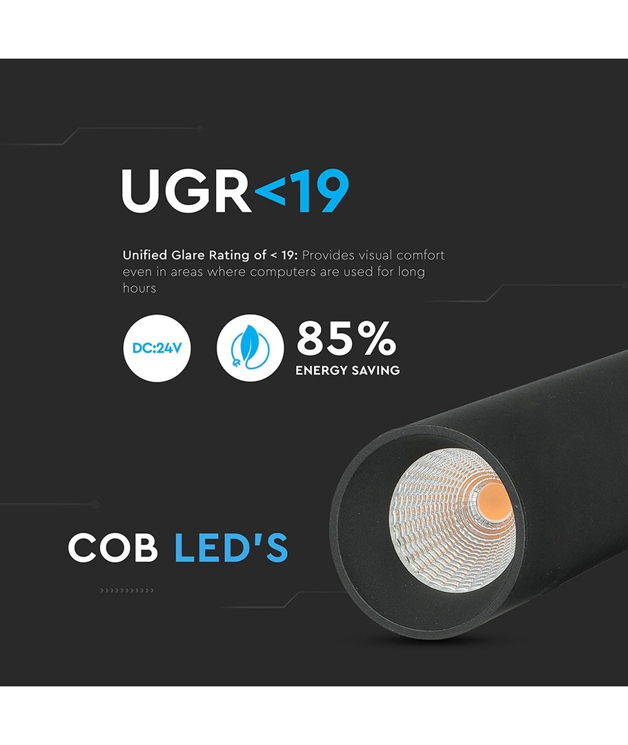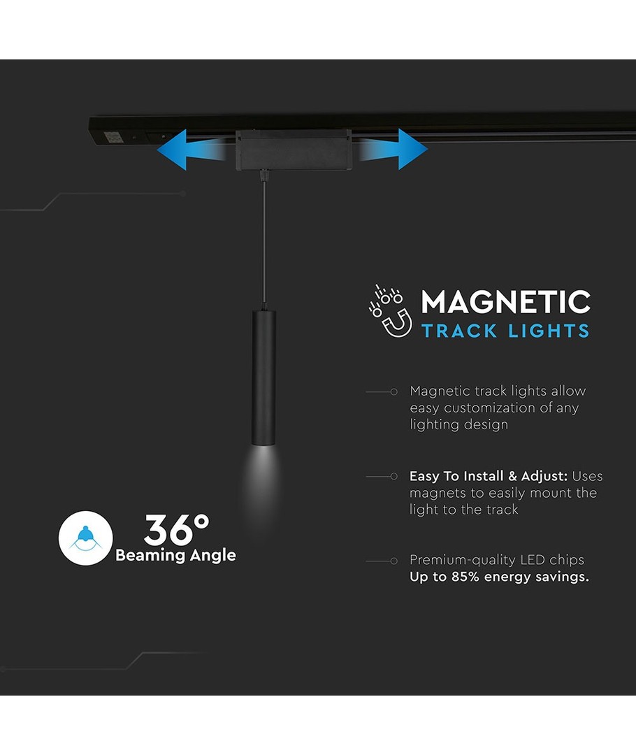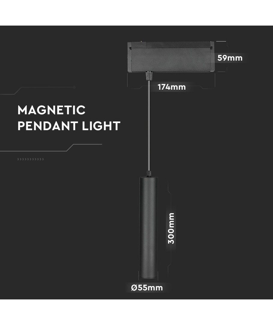 Det stilfulde design i sort gør lampen til et perfekt valg for moderne interiører, både på kontoret og i hjemmet. Den magnetiske ophængning sørger for nem installation og fleksibilitet i belysningen.