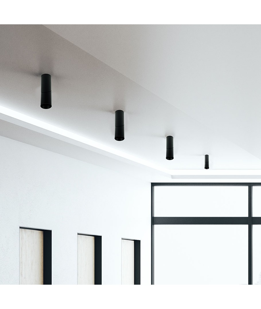 Med sine kompakte dimensioner er lampen designet til at passe ind i de fleste rum uden at være påtrængende eller dominerende. Den slanke profil og stilrene sorte farve tilfører et strejf af elegance.
