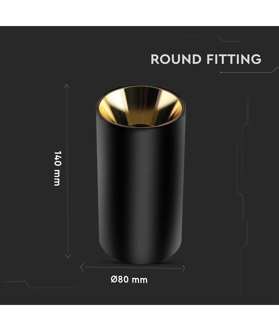 Med sin slanke, runde form og markante, sorte overflade kombineret med et gyldent indre, giver denne lampe et luksuriøst præg til ethvert rum. Den gyldne belægning på indersiden af lampen kaster et varmt og indbydende lys ud i rummet, hvilket skaber en behagelig atmosfære.