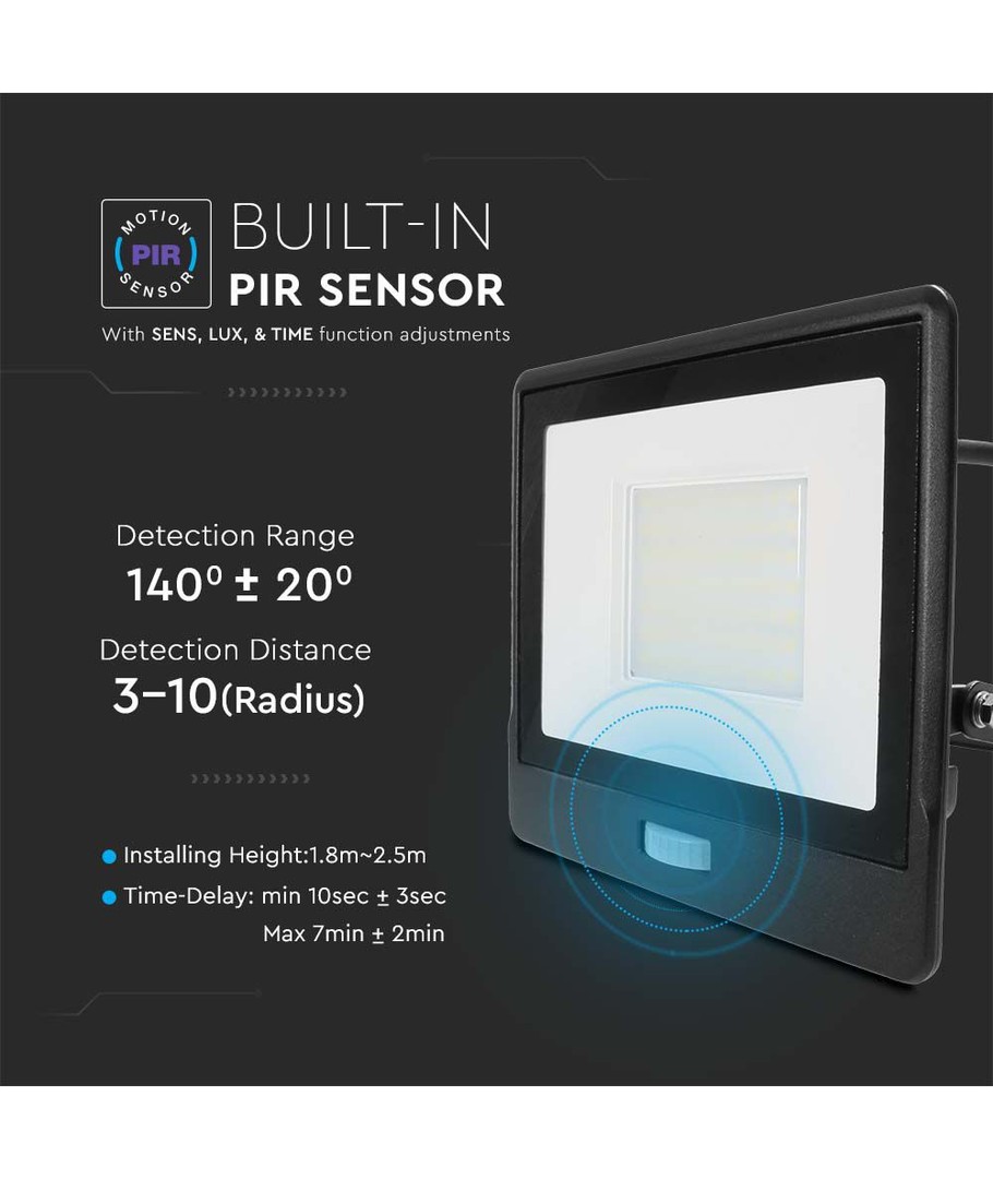 Oplev effektiv belysning med denne 50W PIR sensor projektør, som er udstyret med en Samsung LED chip. Den er perfekt til dem, der søger både funktionalitet og pålidelighed i én pakke.