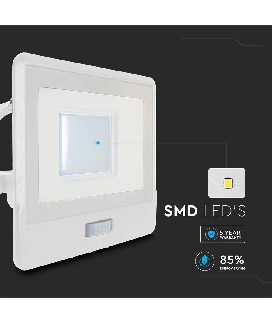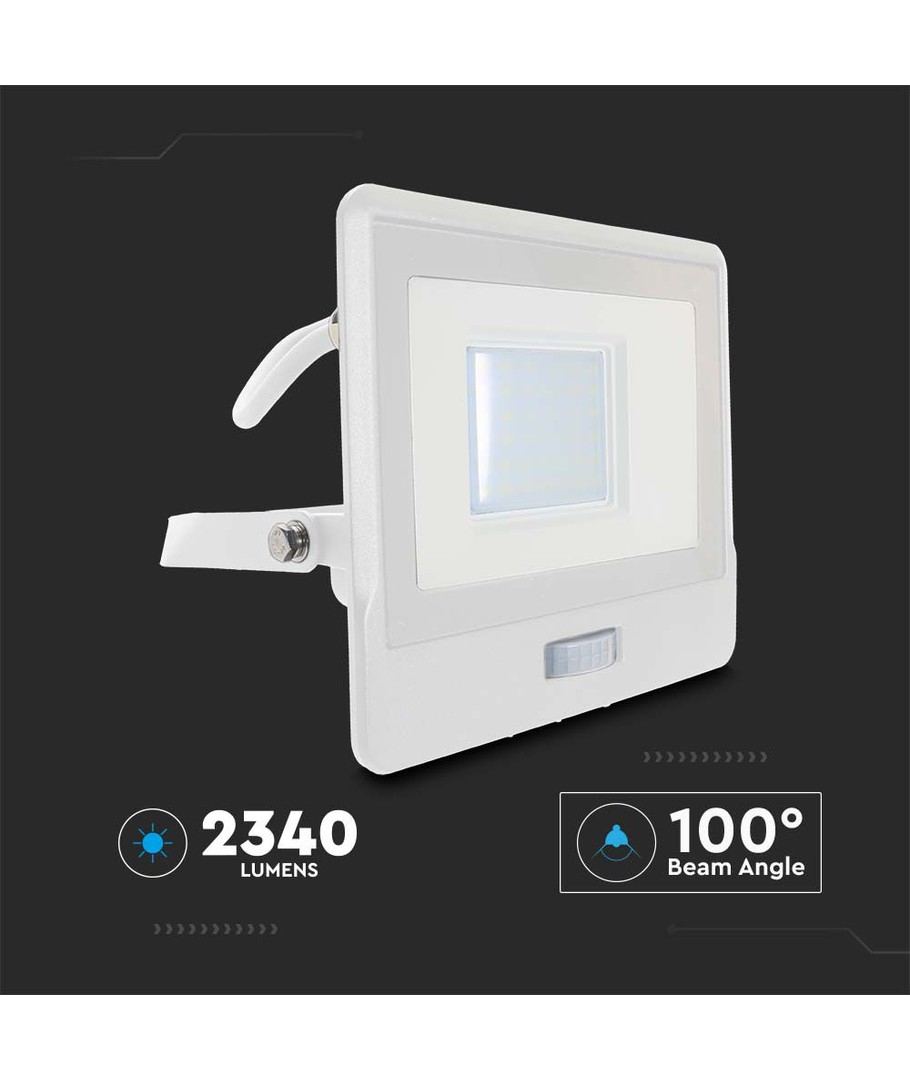 Oplev en kraftfuld og effektiv belysningsløsning med denne 30W projektør, udstyret med en PIR sensor og Samsung LED chip. Projektøren garanterer 2340 lumens for optimal lysstyrke og en bred spredning på 100 grader, der sikrer en jævn fordeling af lyset i ethvert rum eller område.