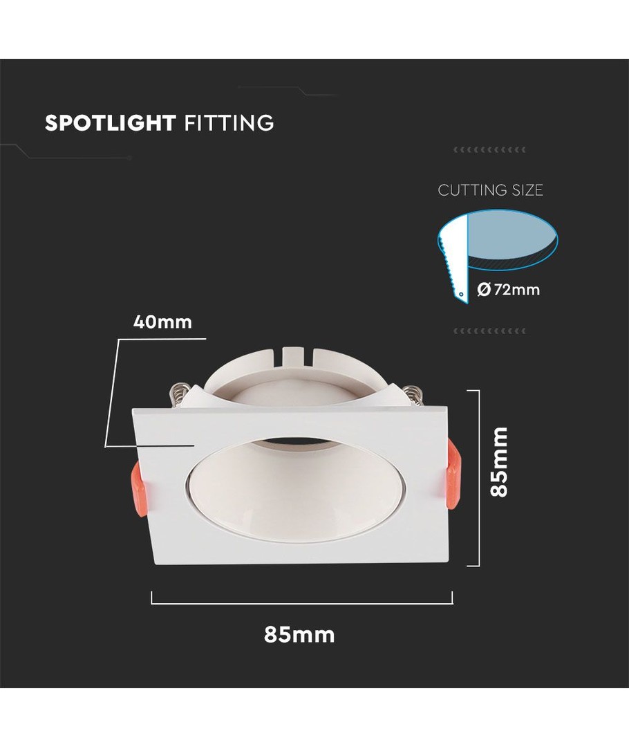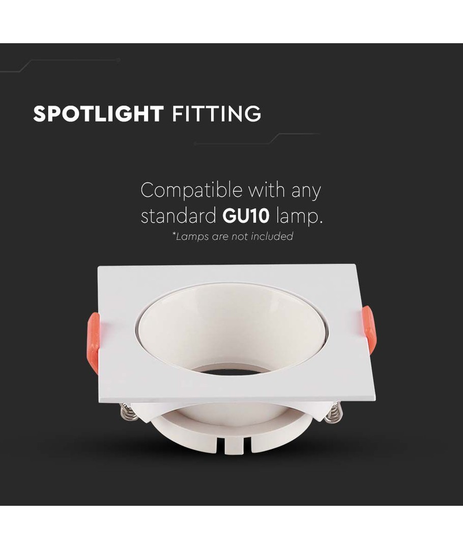 For de, der værdsætter både design og funktionalitet, tilbyder denne kvadratiske GU10 lampe en moderne indretning med en hvid ramme og hvid reflektor. Den passer perfekt ind i ethvert rum, hvor enkelhed og stil er i højsædet.
