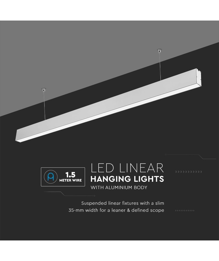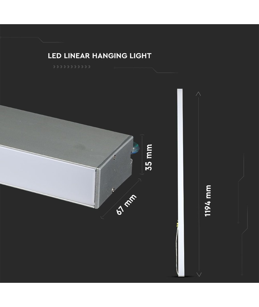 Oplev effektiv belysning med denne lineære hængelampe. 40W effekt og en lysstrøm på 3300 lumens sikrer et kraftigt lys. Den høje spredningsvinkel på 120 grader giver en jævn lysfordeling, der skaber optimale arbejdsforhold.