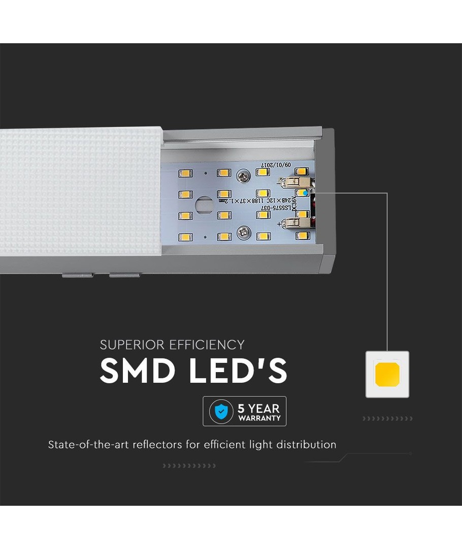 Giver et moderne look med et sølv hus og mål på 1197 x 50 x 65 mm. Dette stilrene design passer nemt ind i forskellige rumtyper og indretninger.