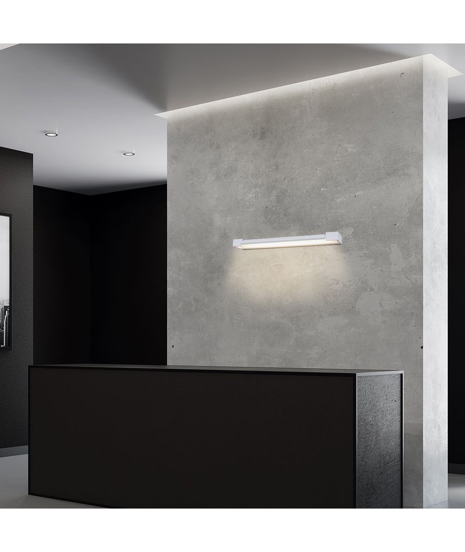 Væglampens slanke dimensioner på 600 x 42 x 100 mm gør den til et diskret men effektivt element i ethvert rum. Den hvide farve sikrer et moderne og tidløst udtryk, der passer ind i de fleste indretningsstile.