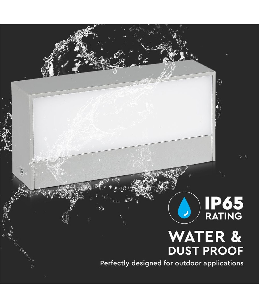 Med dimensionerne 230 x 90 x 100 mm passer denne lampe perfekt på enhver væg uden at være for dominerende. Det elegante grå hus falder naturligt ind i omgivelserne, mens IP65-klassificeringen betyder, at lampen kan modstå vandstænk og regn, hvilket gør den ideel til det danske vejr.