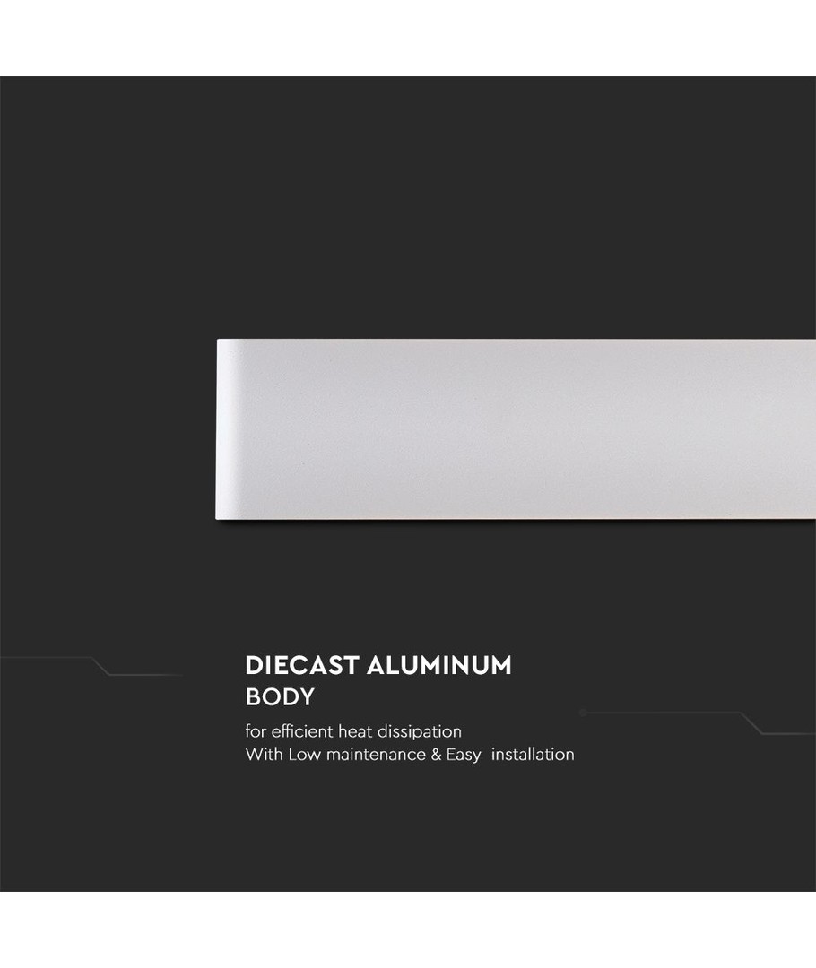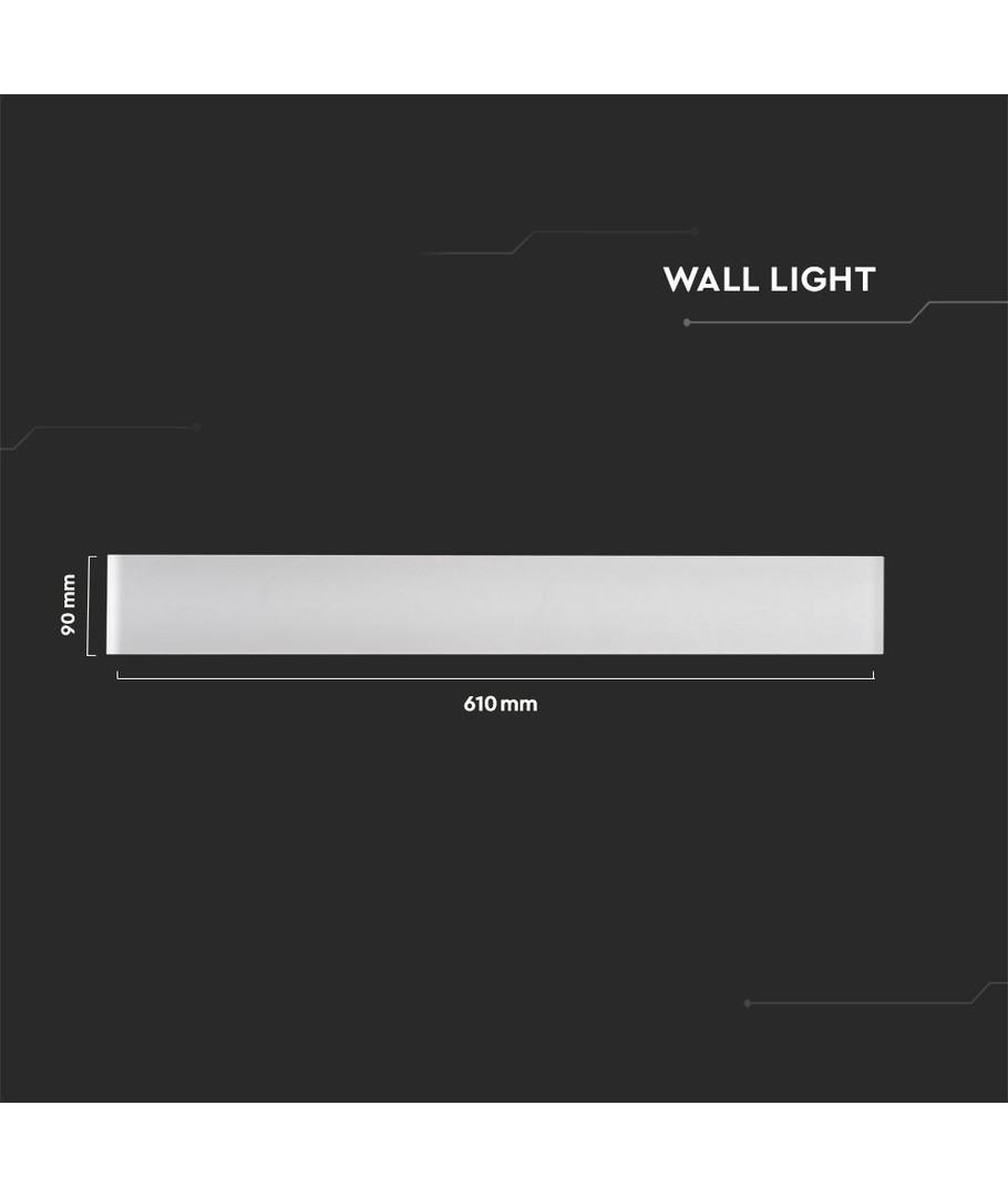 Lampens dimensioner på 610 x 35 x 90 mm kombinerer en slank profil med praktisk design, der let integreres i forskellige rum uden at fylde unødigt.