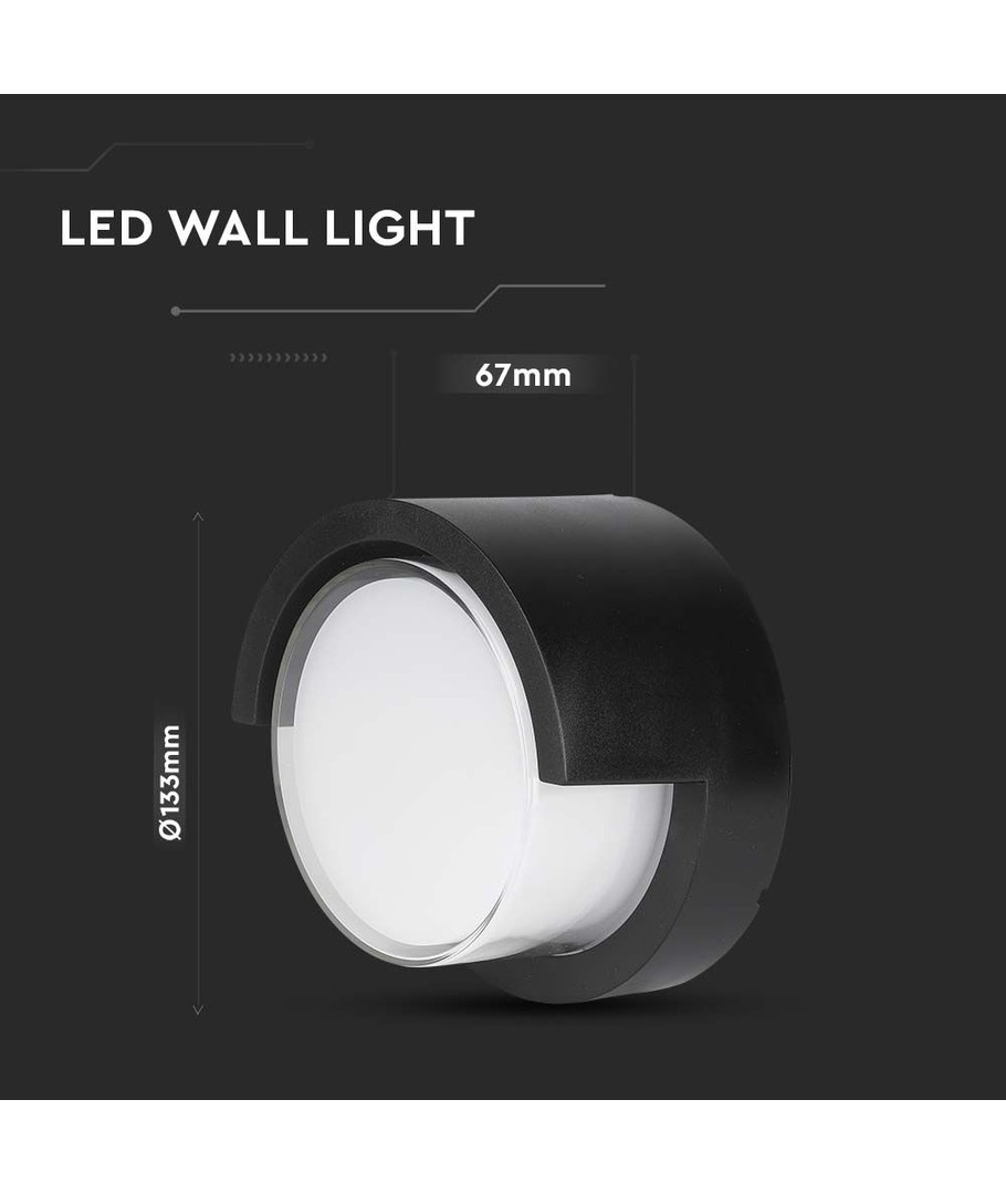 Med sine mål på 133 x 67 mm, passer denne runde væglampe i sort perfekt til ethvert moderne eller klassisk design. Dens IP65-certificering betyder, at den er velegnet til udendørs brug, da den tåler både vandstænk og regn.