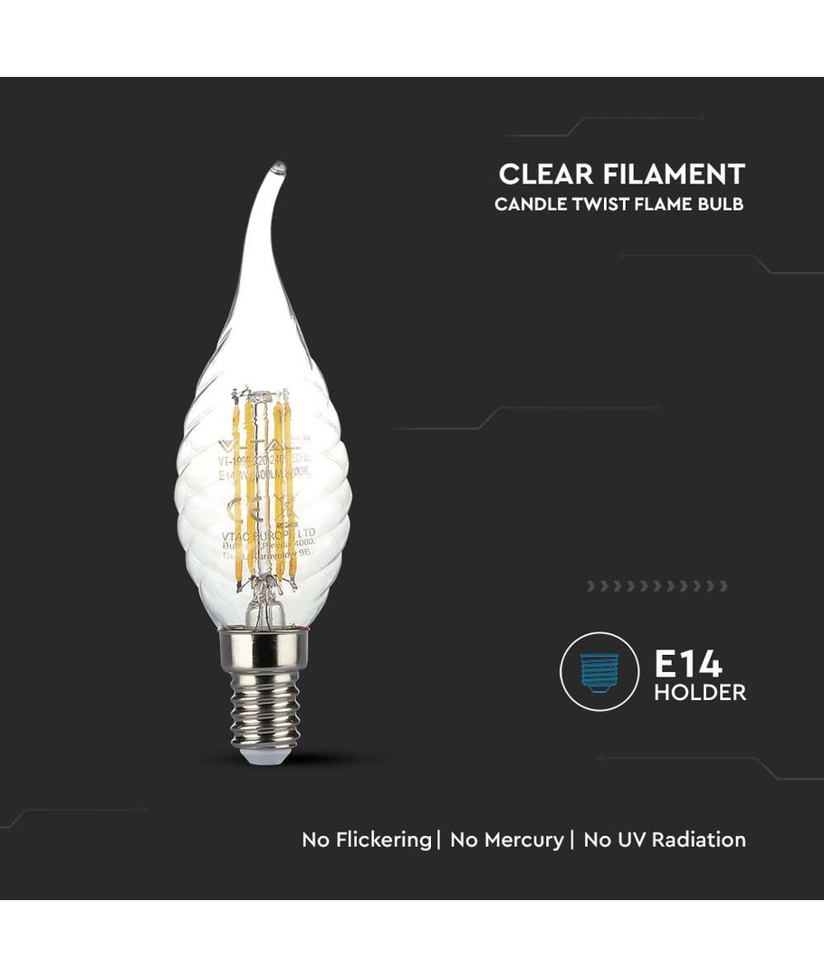 Oplev en jævn lysfordeling og en imponerende lysstyrke på 400 lumens med denne 4W kertepære. Den lille E14 fatning gør den ideel til en lang række lamper og armaturer.