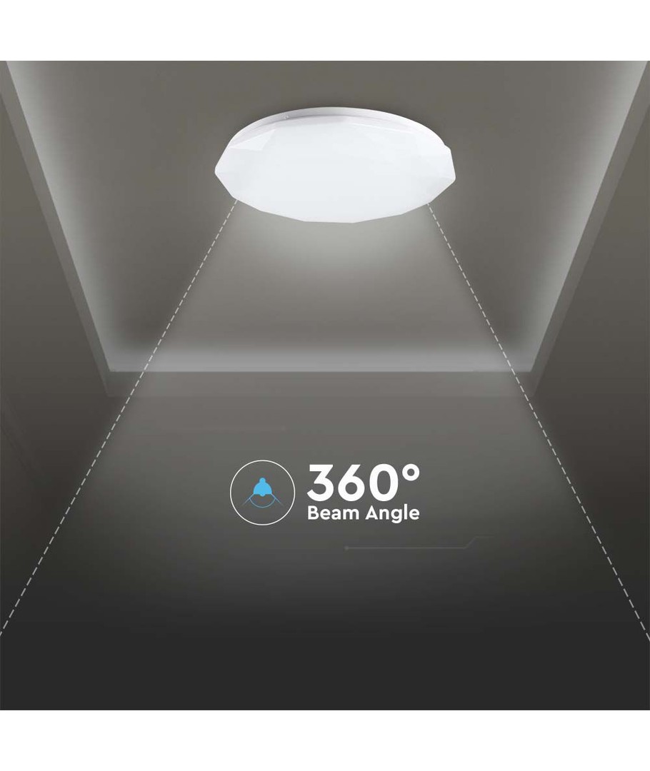 Loftslampen har en lysfordeling på 360 grader, hvilket sikrer, at lyset spredes jævnt uden mørke områder. Dette gør den velegnet til mange typer rum, herunder stuer, kontorer og soveværelser.