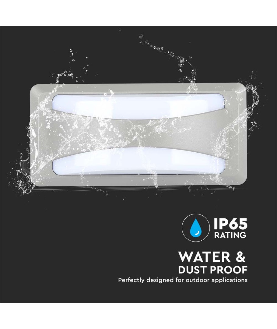 Lampehuset er i en elegant grå farve, dimensioneret til 230 x 76 x 110 mm, hvilket gør den perfekt til en bred vifte af indretningsstile. Den kan installeres på både indvendige og udvendige vægge, hvilket gør den velegnet til både bolig- og arbejdspladsbelysning.