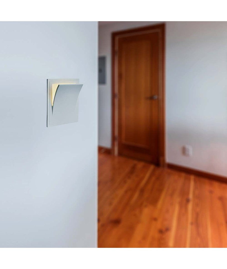 Designet er neutralt og tidsløst i hvidt, hvilket gør, at lampen let kan integreres i ethvert rum. Denne væglampe tilbyder en behagelig belysning, ideel til brug i stuer, soveværelser eller korridorer.