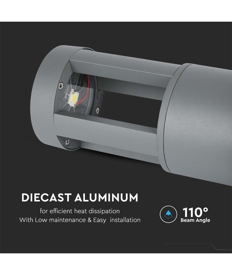 Lampen kommer i en elegant grå farve, der let kan integreres i de fleste udendørs indretninger. Dens IP65-certificering betyder, at den er ideel til udendørs brug, da den er modstandsdygtig overfor både vandsprøjt og regn.