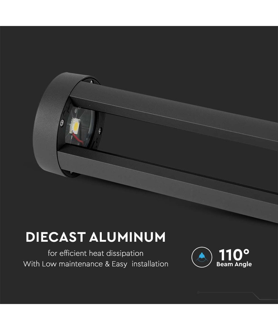 Det sorte hus i elegant design har dimensioner på 800 x 108 x 148 mm, der gør den til en subtil, men iøjnefaldende tilføjelse til ethvert miljø. Lampens robusthed understreges af dens IP65 klassifikation, hvilket betyder at den er velegnet til udendørs brug og kan modstå både vandstænk og regn.