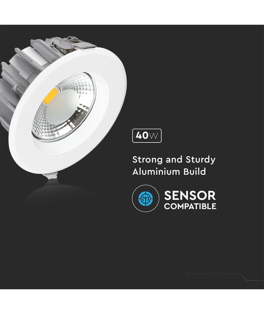 Med en effekt på 40W, tilbyder denne downlight en fremragende balance mellem lyskvalitet og energieffektivitet. Perfekt til dem, der ønsker at reducere energiforbrug, uden at gå på kompromis med lysstyrken.