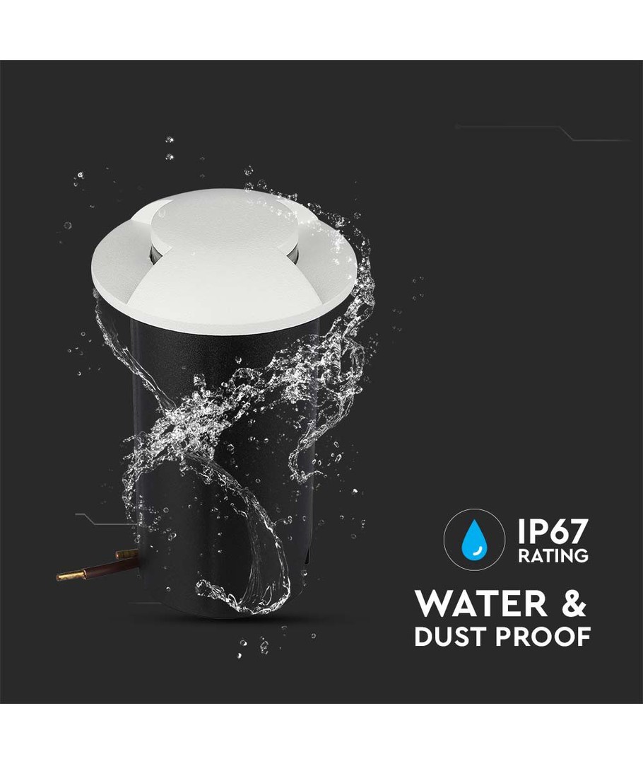 Med dens kompakte størrelse og en IP67 klassificering, kan denne nedgravningsspot modstå vand, hvilket gør den perfekt til installation i udendørs indgange, stier, og haver. Bemærk dog, at den ikke er egnet til permanent neddykning.