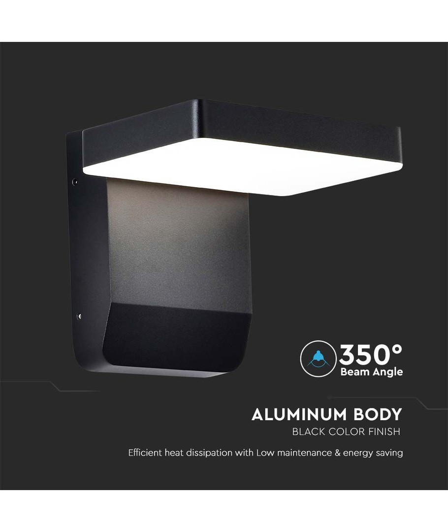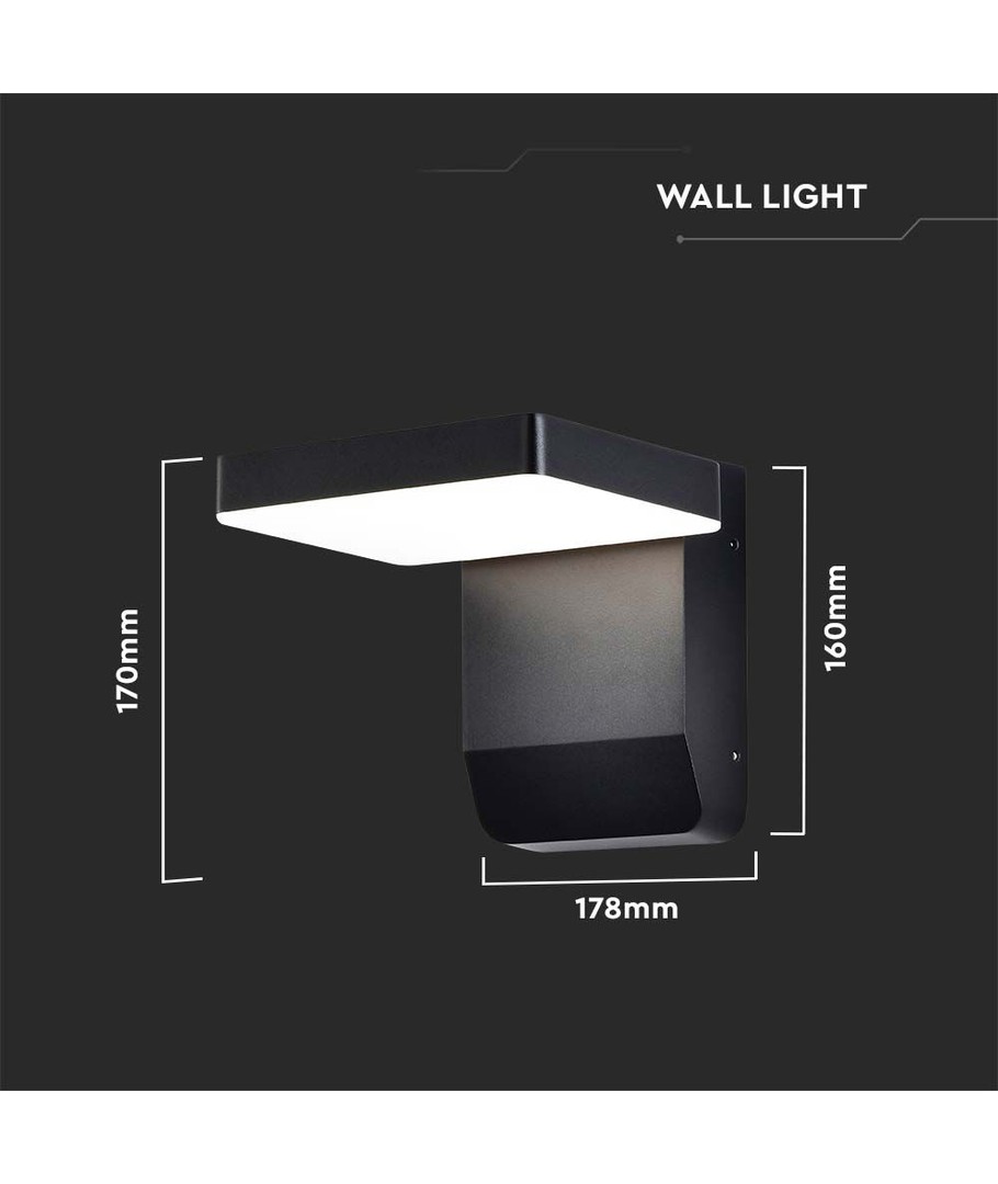 Væglampen måler 178 x 160 x 170 mm og har et stilrent sort hus, hvilket gør den let at integrere i forskellige arkitektoniske stilarter. Med en IP65-klassificering er denne lampe særligt velegnet til udendørs brug, da den tåler både vandstænk og regn.