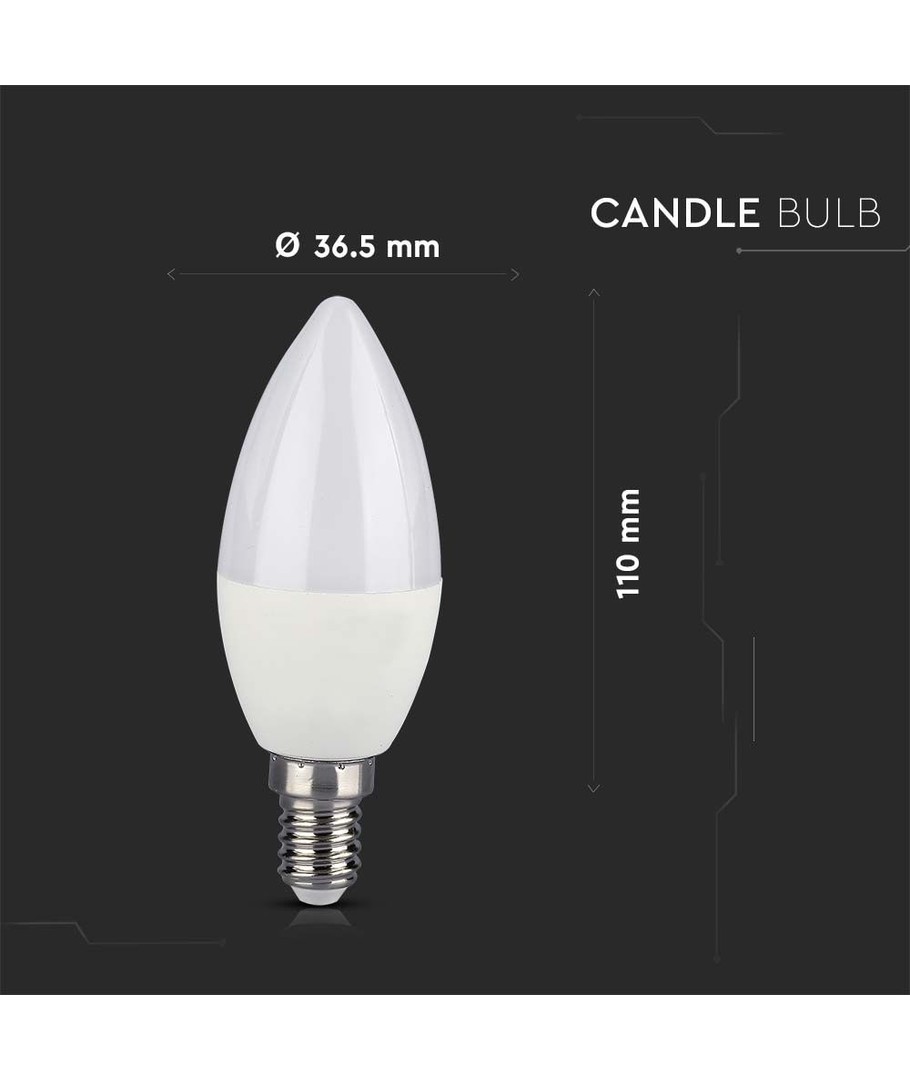 Med dimensionerne 110 x 36.5 mm passer denne pære perfekt ind i forskellige typer lamper uden at gå på kompromis med stil. Den elegante kerteformede pære er et fremragende valg for dem, der ønsker et moderne og funktionelt lys.