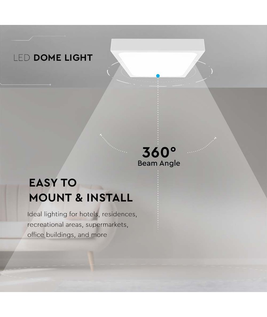 Med sin elegante hvide ramme integrerer dette firkantede kuppellys sig problemfrit i ethvert moderne interiør. Det kombinerer funktionalitet med stil, hvilket gør det til et must-have for enhver, der værdsætter både æstetik og kvalitet i deres belysning.