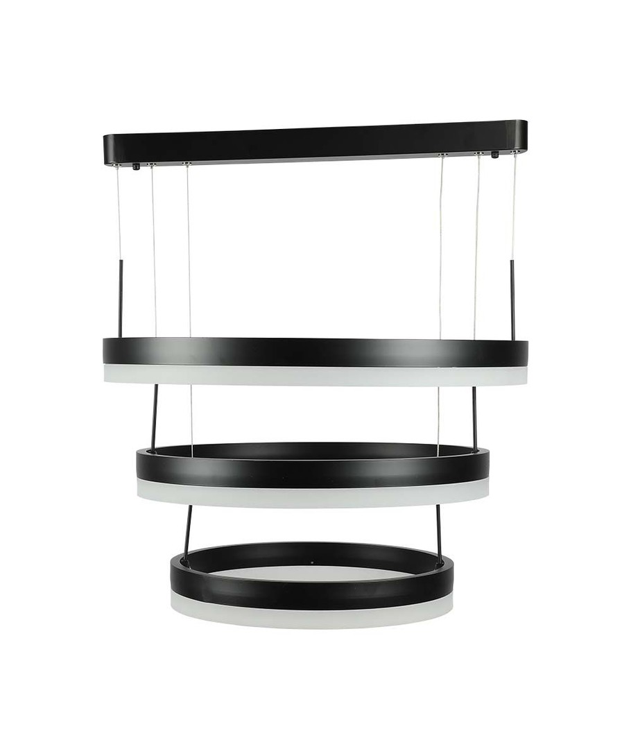 Designet i en stilfuld sort farve, føjer lysekronen et elegant touch til ethvert moderne interiør. Med sit store dimensioner på 1200 x 600 mm bliver den en iøjnefaldende del af din indretning.