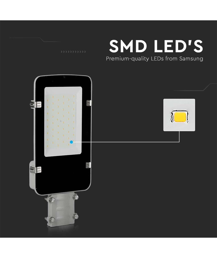 Denne gadelampe er udstyret med Samsung LED chip, kendt for sin holdbarhed og effektivitet, og kommer med en betryggende 5 års producentgaranti. Det betyder, at du kan nyde vedvarende pålidelig belysning uden bekymringer.
