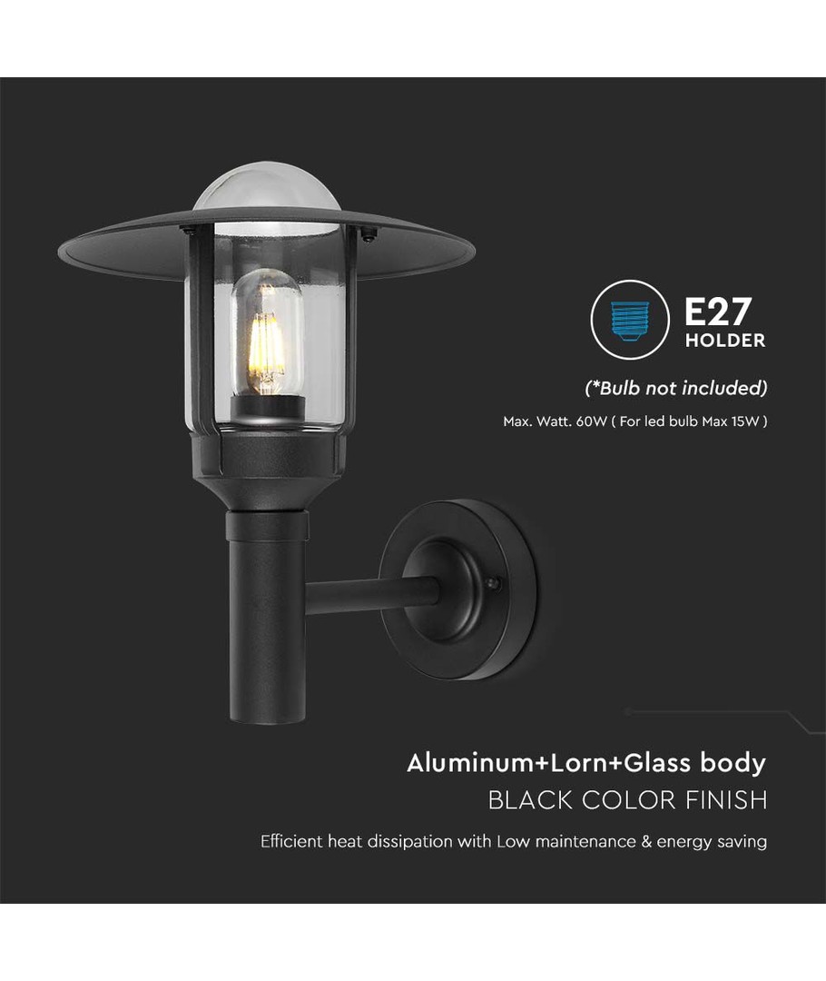 Opgrader din belysning med denne stilfulde E27 væglampeholder, der kombinerer moderne design med robust funktionalitet. Designet i en sofistikeret mat sort finish med klart glas, vil denne lampeholder tilføje et luksuriøst touch til ethvert hus.