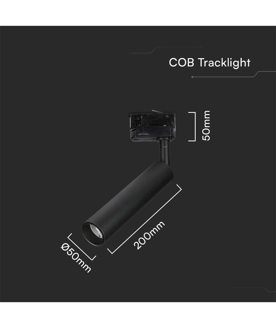 Med en dimension på 200 x 50 x 50 mm, er denne skinnespot kompakt og diskret, mens den integrerede lyskilde og professionelle køling sikrer en driftssikker løsning til dine belysningsbehov.