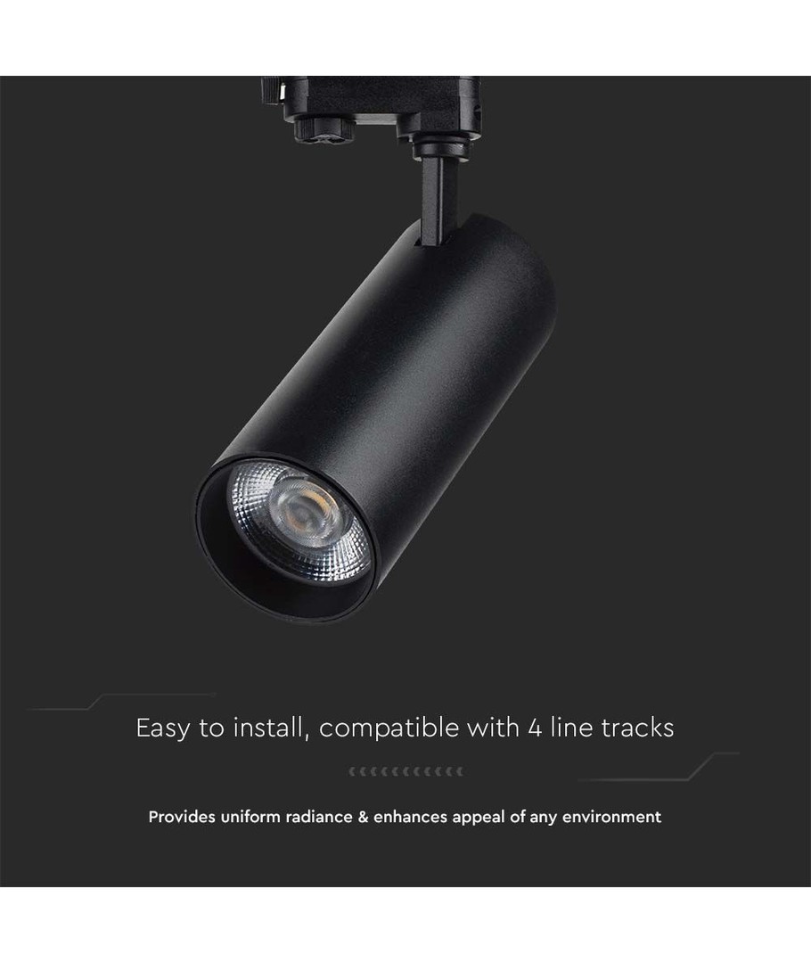 Denne skinnespot er det ideelle valg for dem, der søger høj ydeevne og kvalitet i et stilrent design. Perfekt til brug på gallerier, butikker eller i hjemmet, hvor belysningens præcision er af største betydning. Med dens moderne sorte finish passer denne skinnespot ind i ethvert interiør, hvor den leverer et klart og effektivt lys.