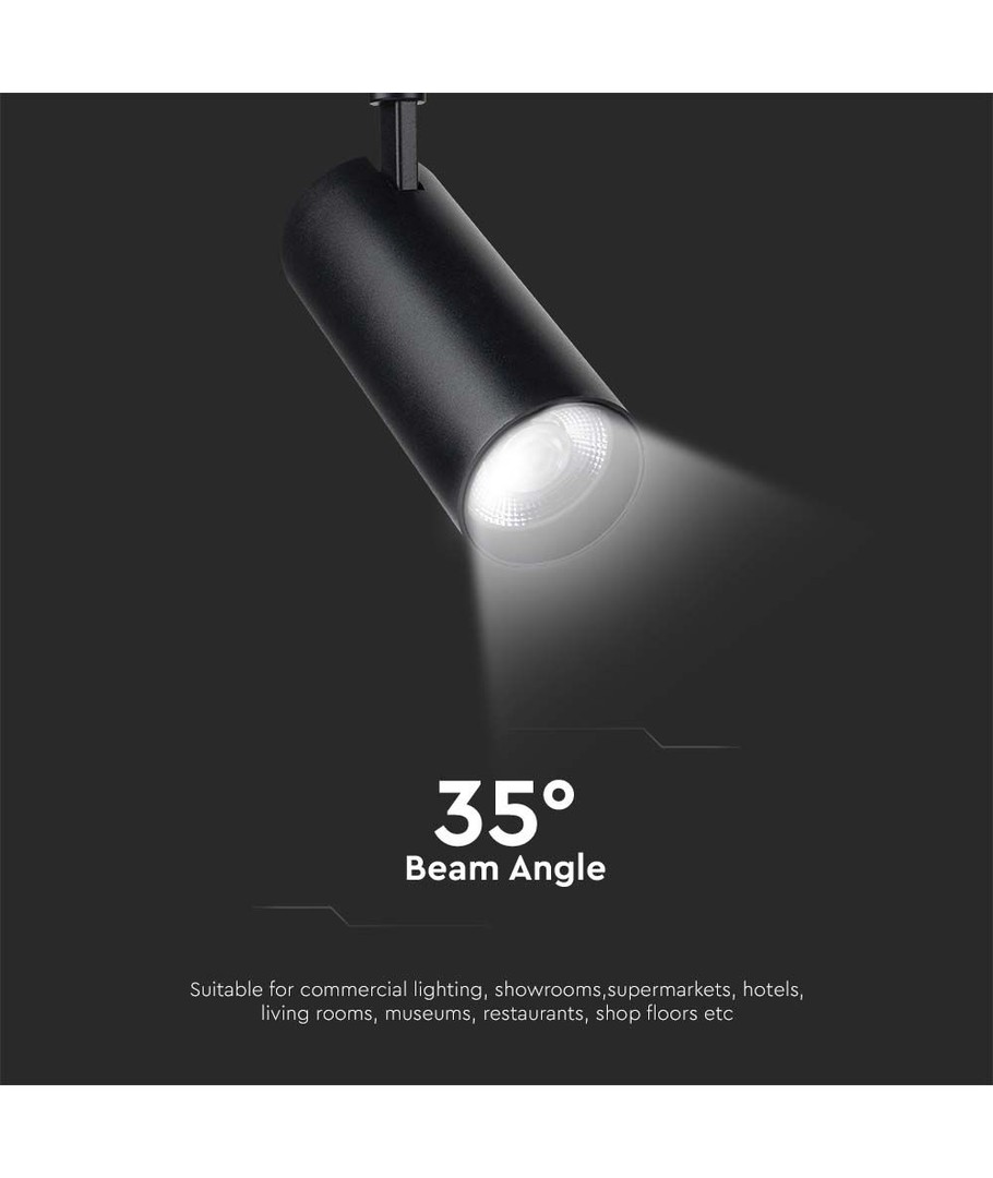 Opnå et præcist og kraftigt lys med denne moderne og stilfulde skinnespot. Med en effekt på 40W leverer denne LED-skinnespot en lysstyrke på impressionante 3150 lumens. Det fokuserede lys spredes over 35 grader, hvilket sikrer en kontrolleret og fokuseret lysstråle til ethvert rum.