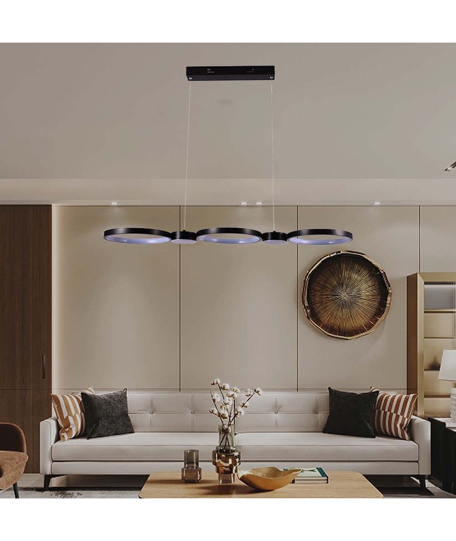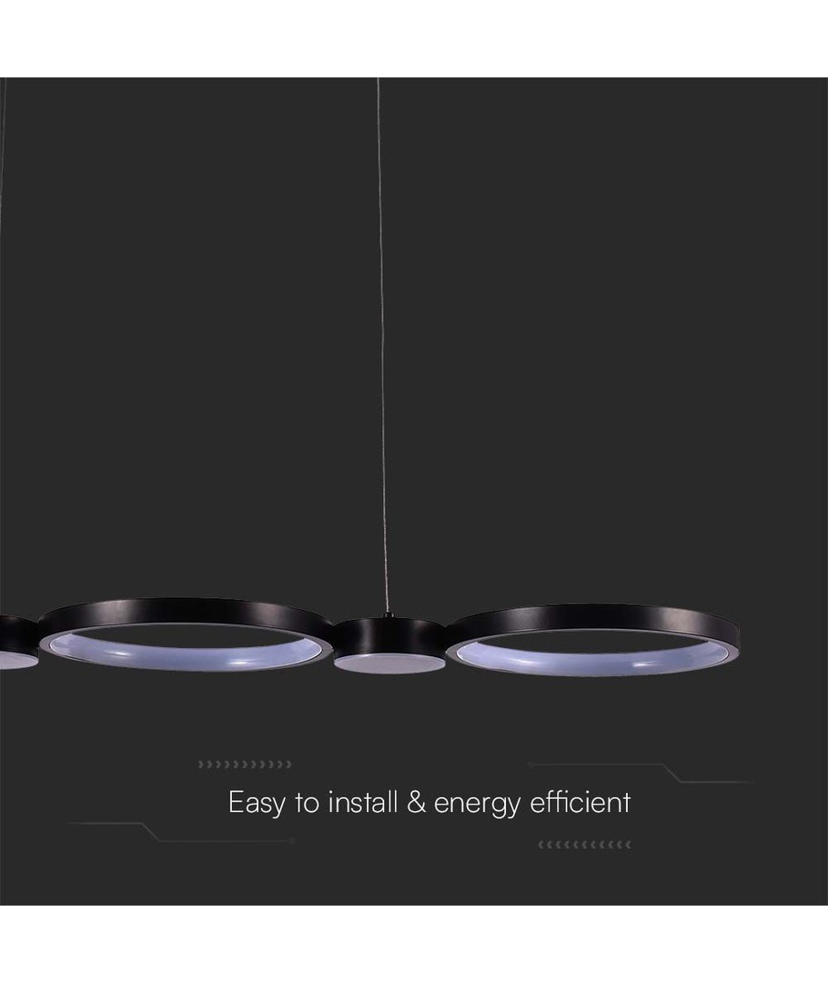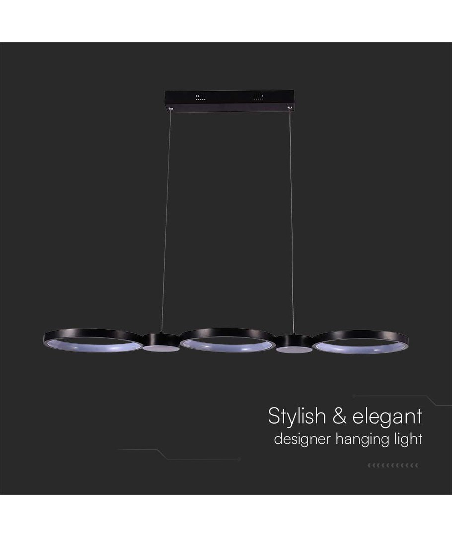 Med sit slanke sorte hus er denne hængende lampe en stilfuld tilføjelse til moderne interiører og passer perfekt ind i både kontor- og hjemmeindretninger. Den kombinerer funktion og æstetik på fineste vis og hjælper med at belyse dine omgivelser på en både effektiv og elegant måde.
