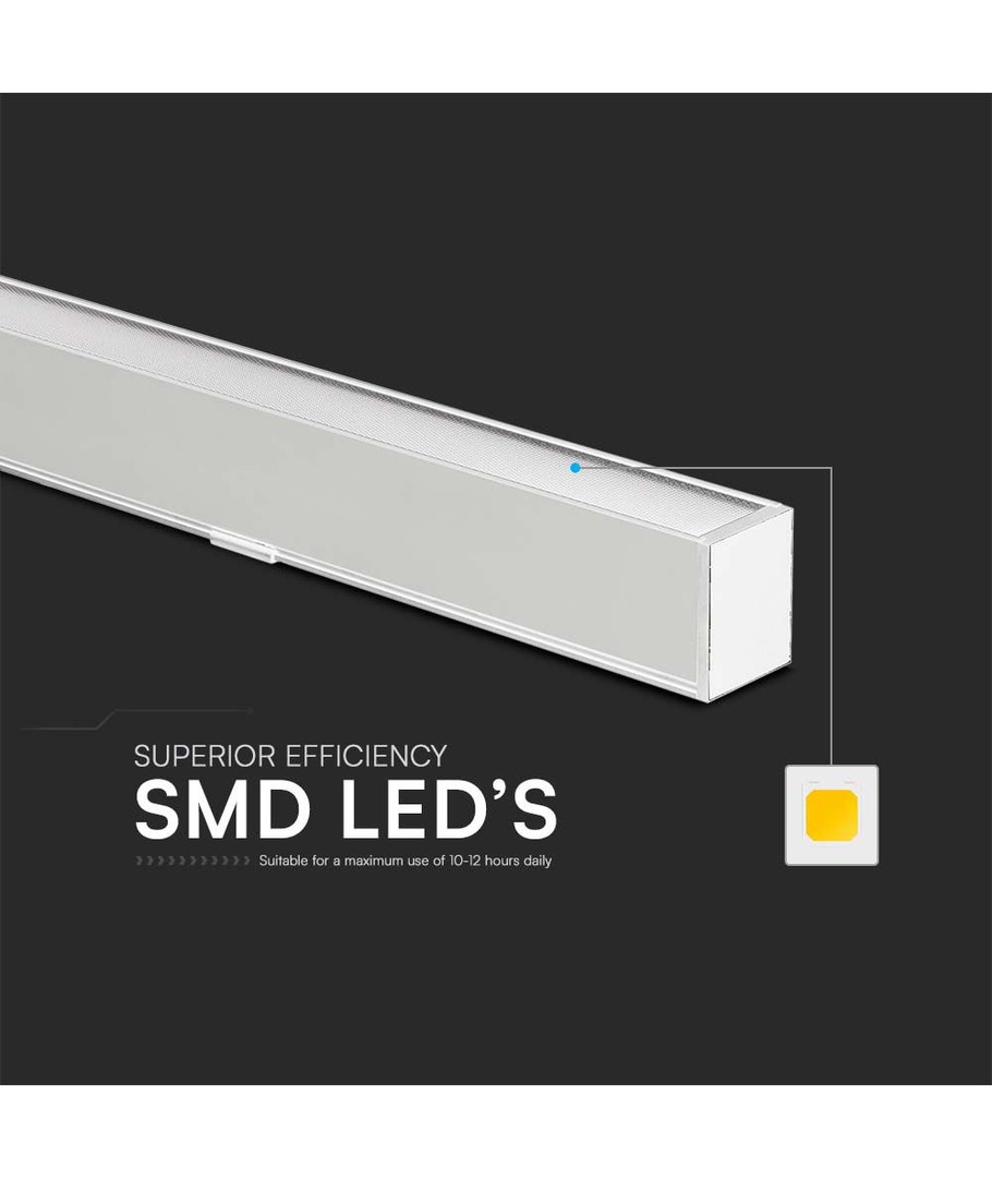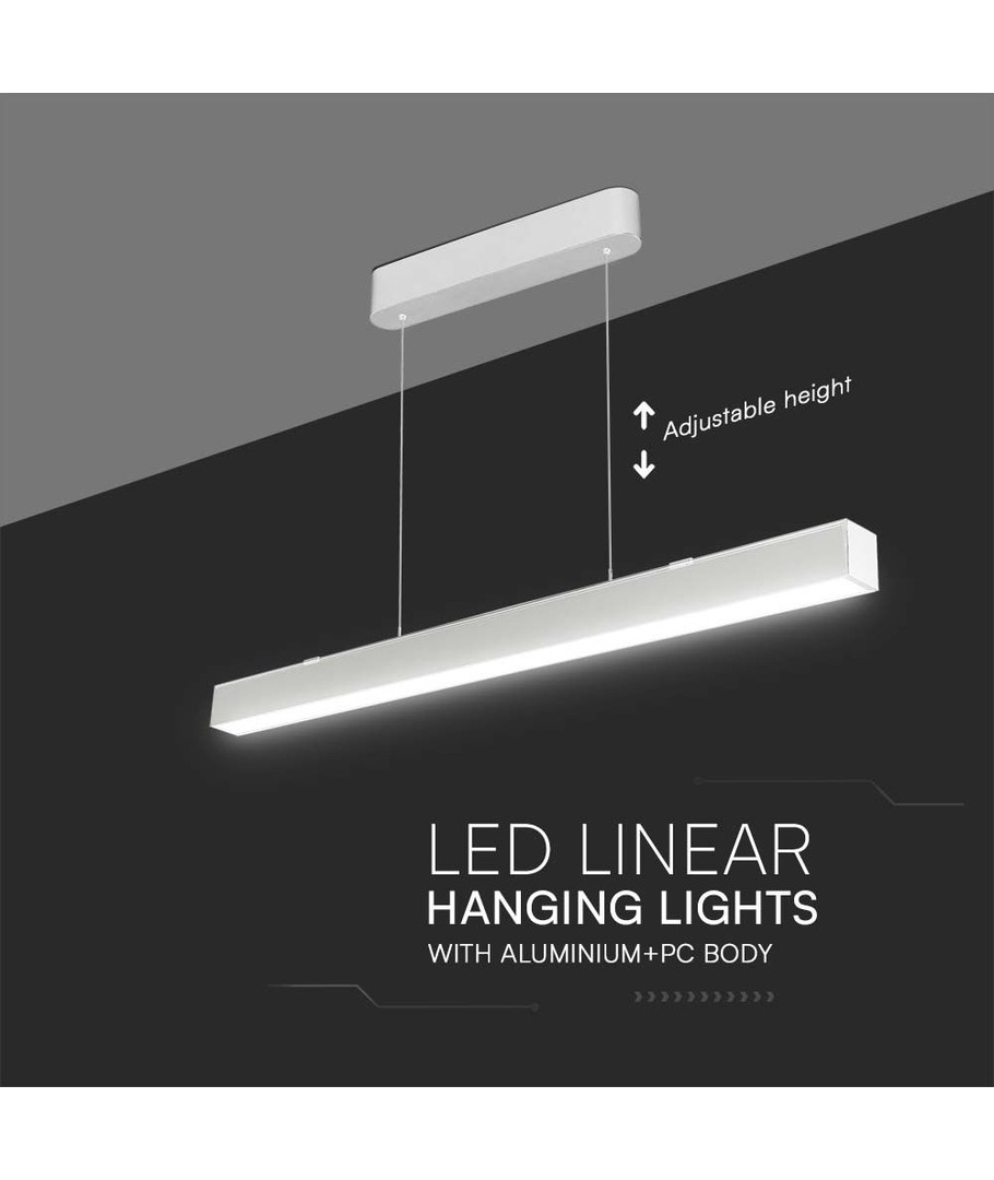 Oplev en ny standard for belysning med dette effektive 40W LED lineære hængende suspensionslys. Det er designet med en Samsung LED chip, hvilket sikrer både kvalitet og driftssikkerhed i op til 30.000 timer.