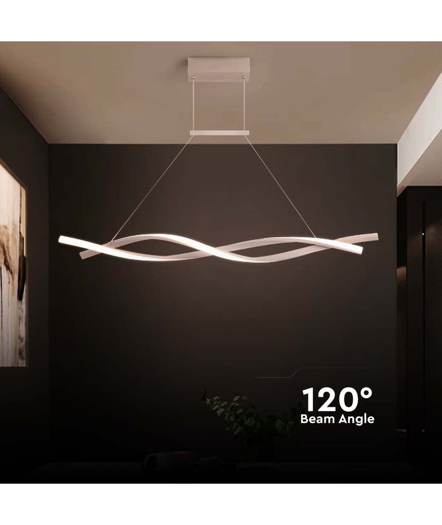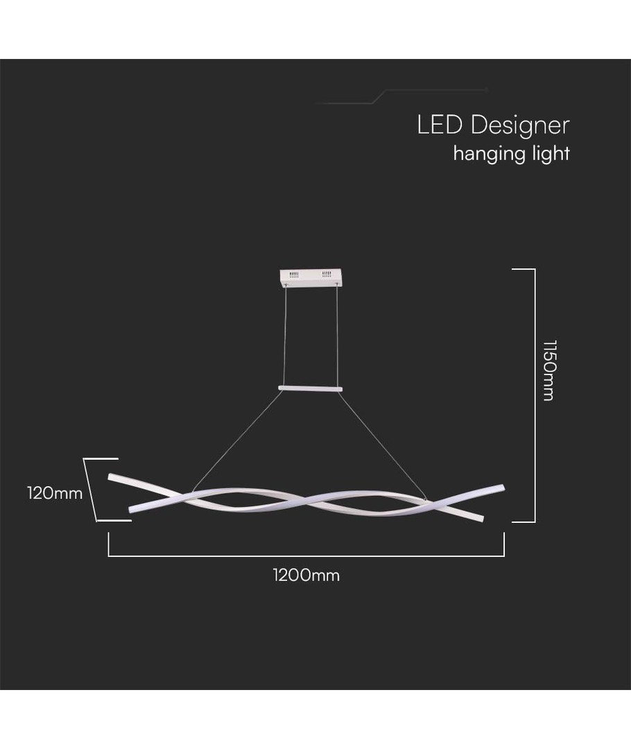 Med dimensionerne 1200 x 120 x 1150 mm passer denne hængelampe perfekt til de fleste rum, og dens slanke profil gør den til et elegant valg. Lampen er hvid, hvilket giver et rent og minimalistisk udtryk, der let kan integreres i forskellige indretningsstile.