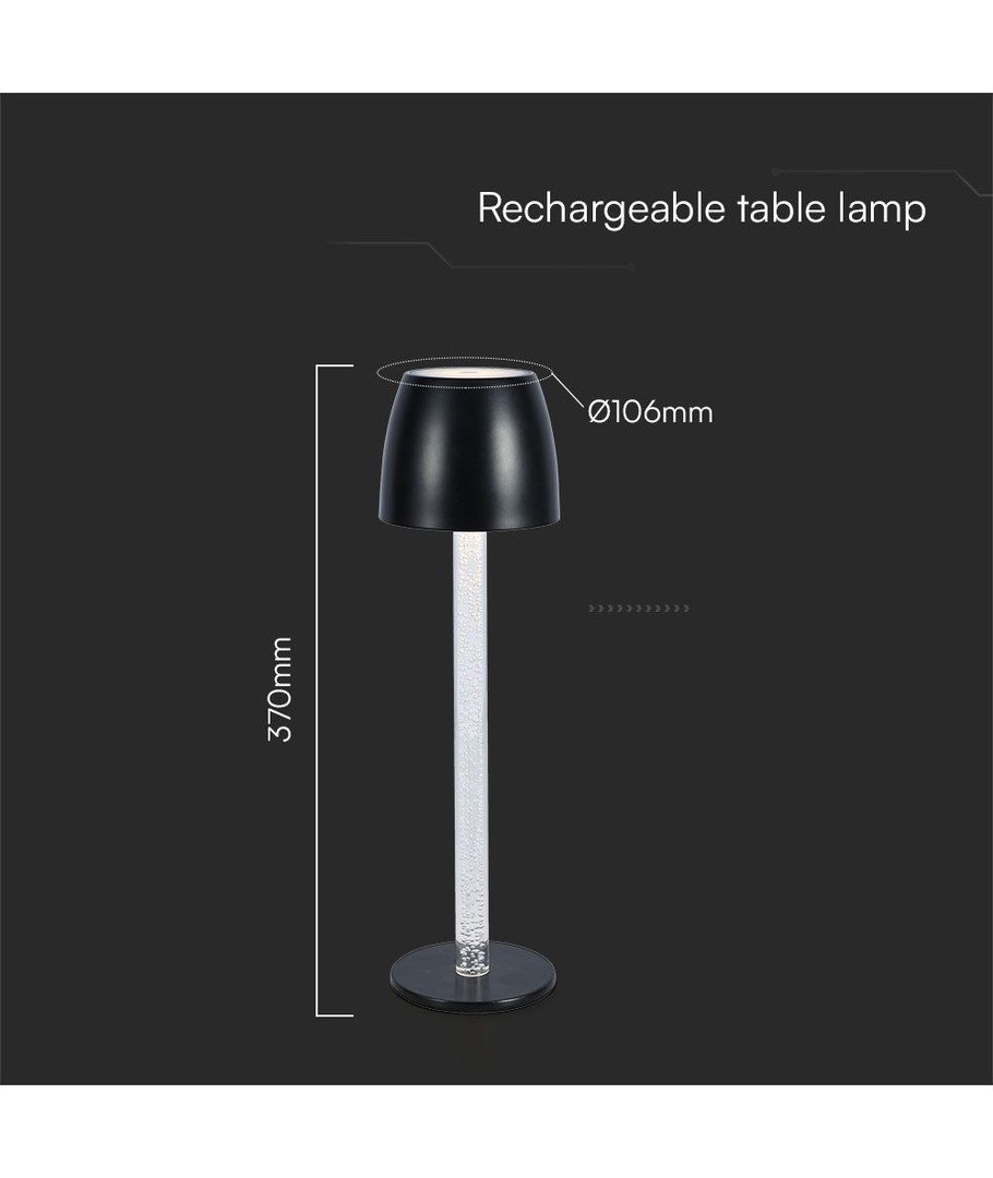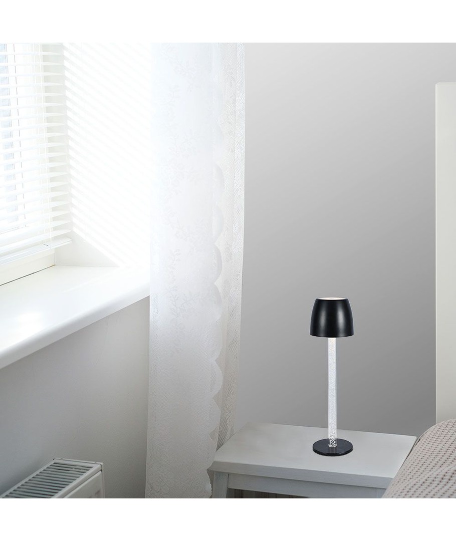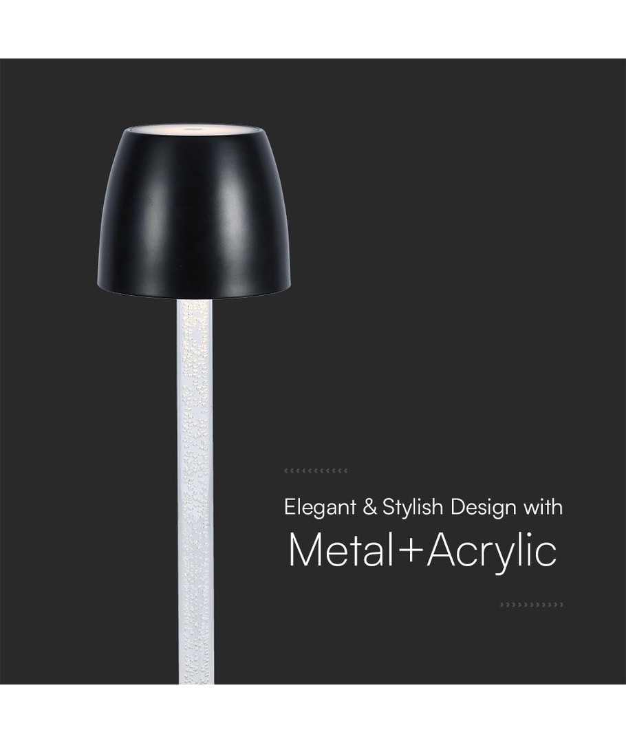 Giv dit rum et moderne præg med denne elegante 3W LED bordlampe. Den er designet med en transparent stang og et sort hus, der passer perfekt ind i ethvert interiør.
