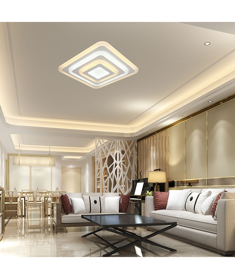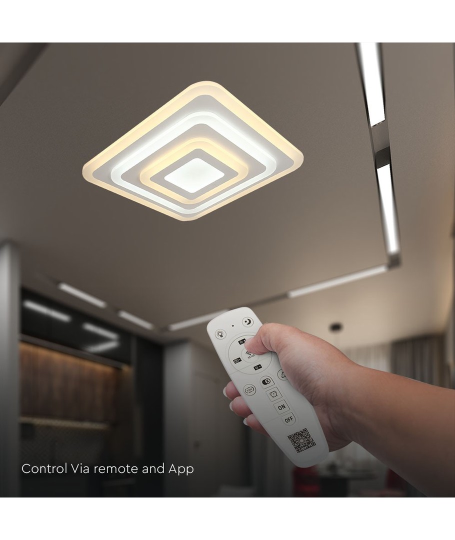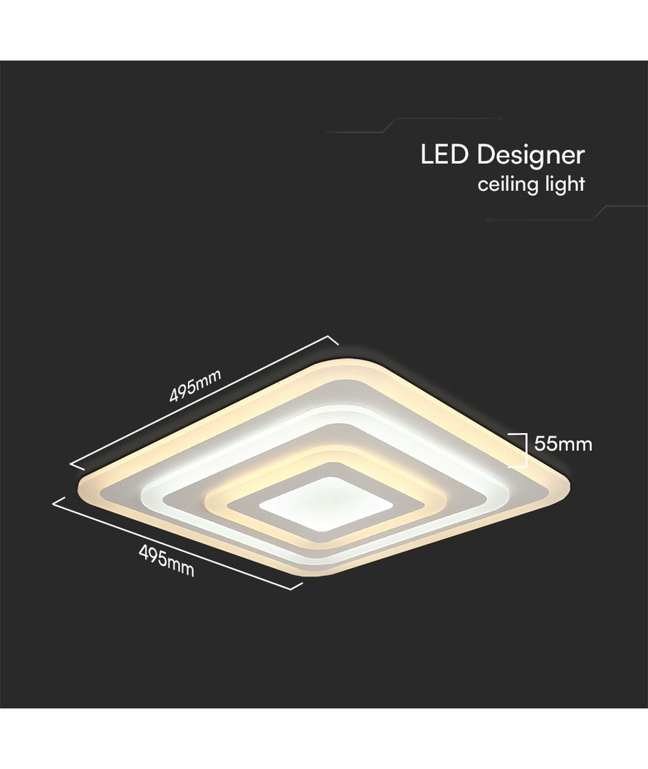 Loftlampens dimensioner på 495 x 55 x 495 mm gør den til en pladsbesparende løsning, der nemt kan integreres i dit hjem. Den hvide farve giver et stilrent udseende, der passer ind i enhver indretning.