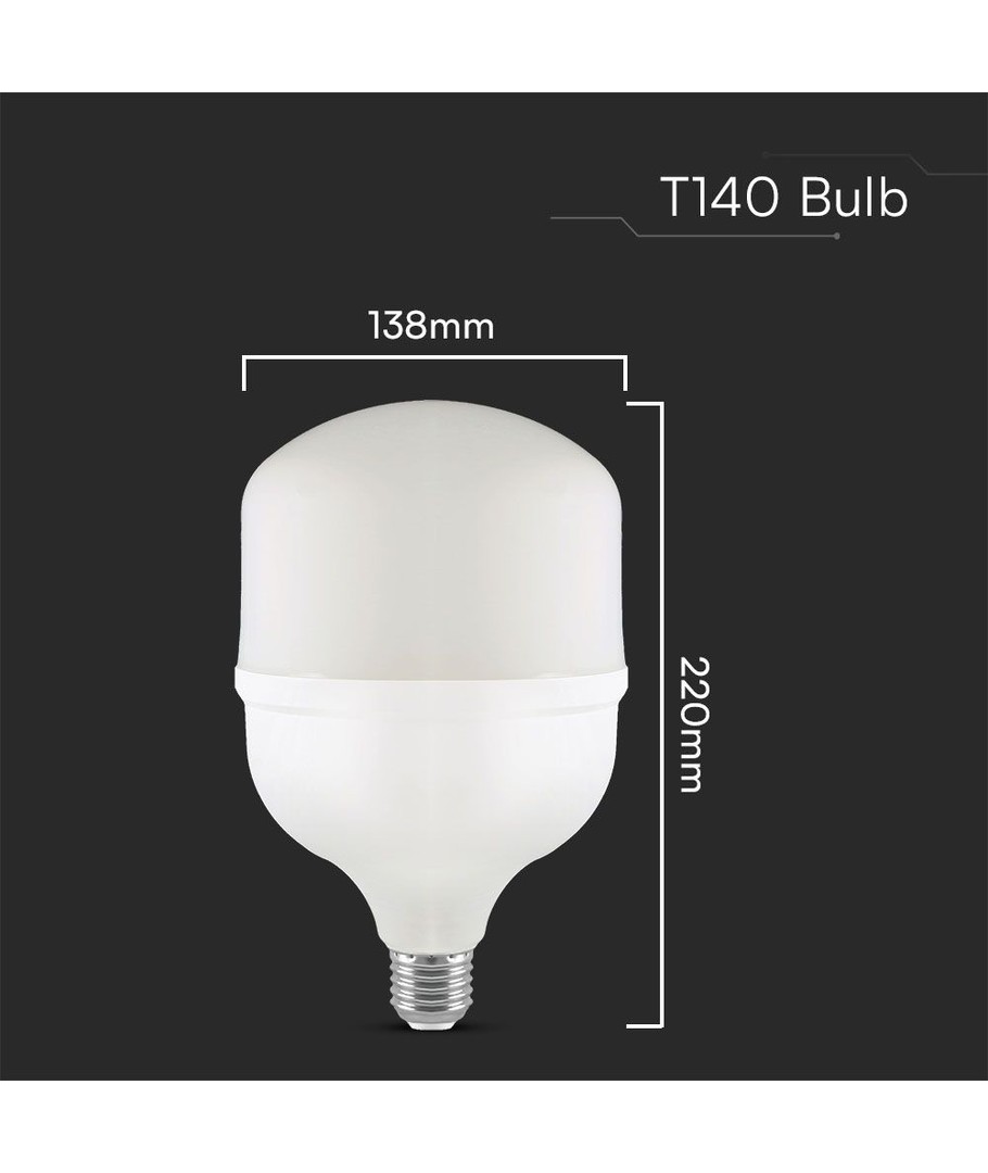 Oplev den kraftfulde 50W T140 LED pære, der kommer med en universel E27 stor fatning, perfekt til at opfylde dine specifikke belysningsbehov. Med en lysstrøm på 5400 lumens leverer denne pære en fremragende lysstyrke, der er ideel til mange anvendelser.